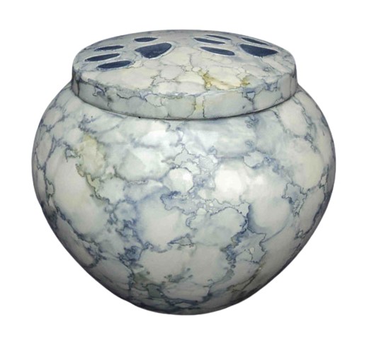 Odessey paw print urn in white stone finish Size – 6.5” , 5” and 4”